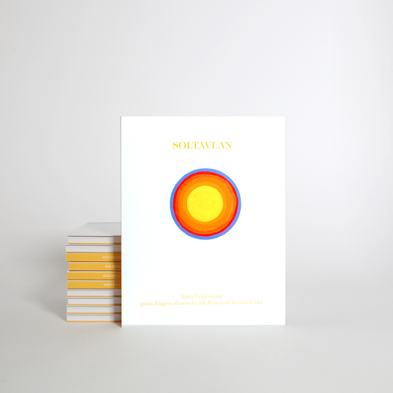 Utställningskatalogen i nätt och behändigt format är rikt illustrerad med fotografier av Matts Leiderstams instalaltion Soltavlan samt utsgångspunkten för utställningen, prins Eugens altarmålning i Kiruna kyrka och det omfattande arbetet med kyrkans flytt.
